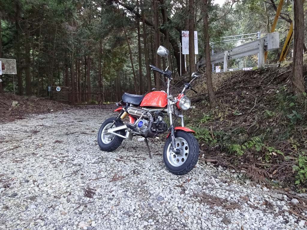 林道やオフロード好きな方だったら「この道入っていったらどんなコースがあるのかな?」と思った事があると思います。しかし知らない林道にいきなり突入してどんどん道が狭くなった挙句、岩や木で道が塞がれていた時にUターン出来なかったらとんでもない事になります。もちろん慣れている方だったらどうにでもなるのでしょうが、初心者の方には「崖等を使って無理矢理Uターン。」等の技は難易度が高過ぎです。そんな悲劇を回避出来るのが、ホンダ・モンキーシリーズやホンダ・エイプシリーズです。車体がコンパクトで軽いので、どんな狭い道で行き止まりになっても容易に帰って来れます。もしUターンが出来なくて、押しながらバックしたとしても余裕で戻って来れます。もちろん本格的なオフロードコースは無理でしょうが、林道程度だったら全然大丈夫だと思います。何より車体が軽くてコンパクトなので、タイヤが滑ってもまったくと言って良い程恐怖を感じません。何よりこのクラスで林道に行くと、本当にハイキングに来ているようなのんびりした楽しさが味わえるのが最大の魅力かもしれません。ちょっと足場の悪い本当の森の中と言う雰囲気を、低速でゆっくり楽しむのはこのクラスの特権だと思います。ちなみに上記画像は当店の在庫車ですが、撮影のために林道の入口に停めただけです。当店在庫車は機関維持のために定期的に走行させますが、林道やオフロードコース等を走行する事はございませんのでご了承下さい。