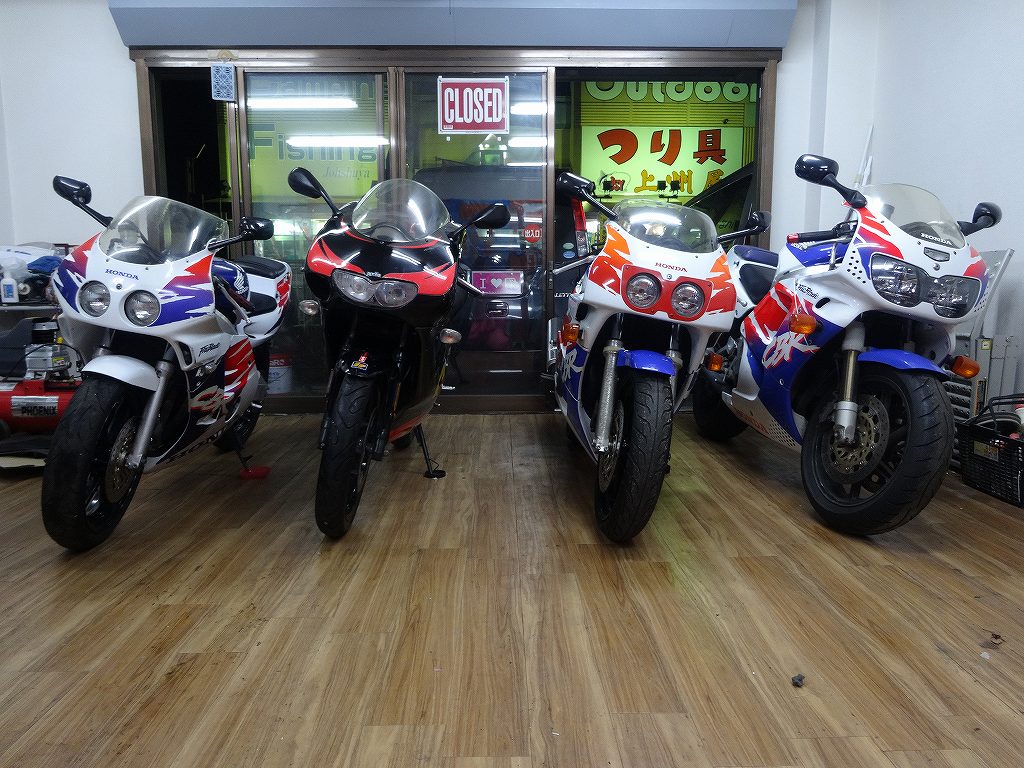 次に車体の大きさです。RS50はイタリア車なので、大柄なイタリア人向けにかなりボディが大きく造られています。上記写真は右から順番にホンダ・CBR900RR、ホンダ・CBR400RR、RS50、ホンダ・CBR250RRと並んでいます。RS50は50ccなのに、CBR250RRと同等どころかCBR400RRに近い大きさです。RS50を初めて見る方はほとんどの方が「これって400ccですか?」と聞いてきます。今回比較対象にしたCBRシリーズは1990年代の車両なので、バイク全体がかなり大きかった時代です。この時代のバイクと並べてもここまでの大きさなので、かなり大きさが小さくなった現代のバイクなら750ccクラスと並べても遜色ない大きさだと思います。