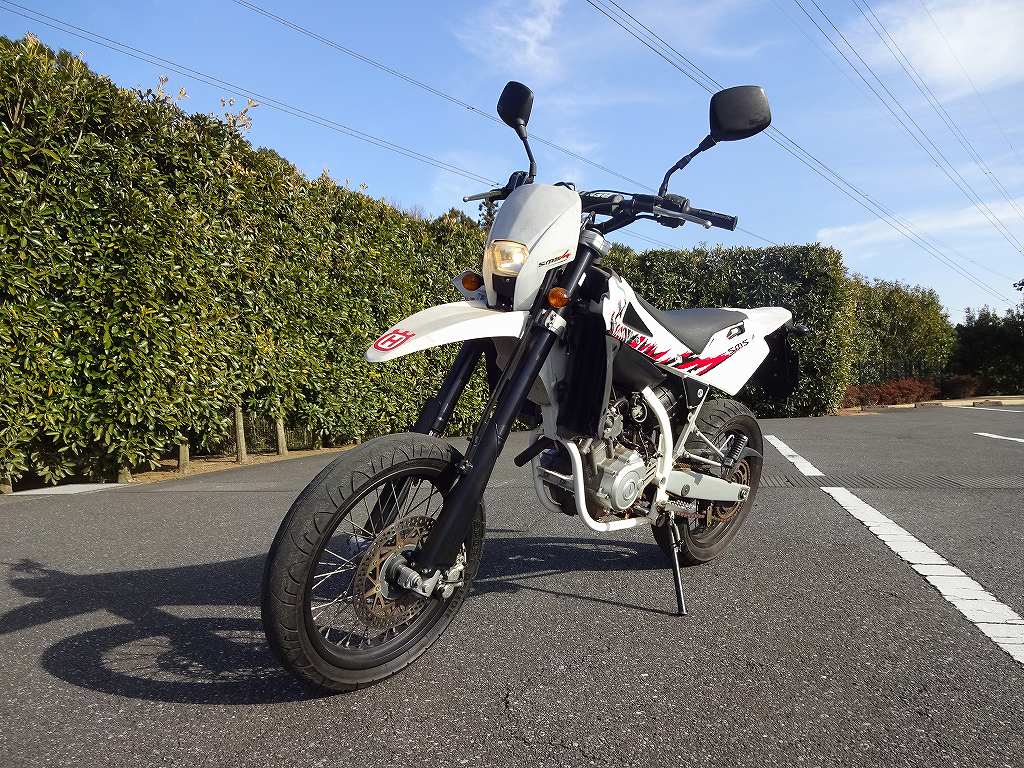 現在では生産も終了していて日本国内での中古車はゼロ台と言う超希少車、ハスクバーナ・125SMSが入庫します!排気量は125ccですが、フルサイズのモタードですので迫力があってカッコイイ1台です!エンジンは125ccの4ストロークエンジンで、輸入車なので4ストロークでありながら2ストロークの125ccと同等のパワーを出しています。ちなみに当店のオーナーやスタッフから「自分で乗りたい!」との声が上がっているので、もしかしたらカウルのカラーチェンジやカスタムがされてしまう可能性があります。近日中に販売価格等が決定されますが、もし気になる方はお早めにお問い合わせ下さい。ちなみにこちらの車両のエンジンはヤマハ製ですので、「輸入車のエンジンはすぐ壊れる。」等と勘違いされている方でも安心です。余談ですが、輸入車のエンジンはまったく弱くありません。輸入車が壊れるのは大体が電装系で、エンジンやミッション等の根本的な部分は日本車と似たようなモノです。ちなみにハスクバーナーは日本であまり知名度はありませんが、1960~1970年代にかけてモトクロス世界選手権で圧倒的な力を誇り、125cc、250cc、500ccの部門で14回、エンデューロ世界選手権で24回、バハ1000で11回優勝している超有名メーカーです。1987年以降はMVアグスタやBMWの傘下を転々としましたが、現在ではKTMの傘下になっています。ハスクバーナ独特のデザインと、400ccクラスと比べても遜色の無い迫力のボディは今でもファンの多い1台となっています。ちなみに私個人もハスクバーナの125ccシリーズは、セカンドバイクとして検討した事がありました。「耐久性のある4ストロークが良いけど、4ストロークだとパワーが足りない・・・」と考えていた私には、4ストロークエンジンなのに2ストロークエンジンと同じパワーなハスクバーナは希望にピッタリだったのです。前述しましたが、現状の状態とカウル等をカスタムした後では価格が大きく異なります。現状の状態で、なるべく安く購入したい方はまずお電話でお問い合わせ下さい。