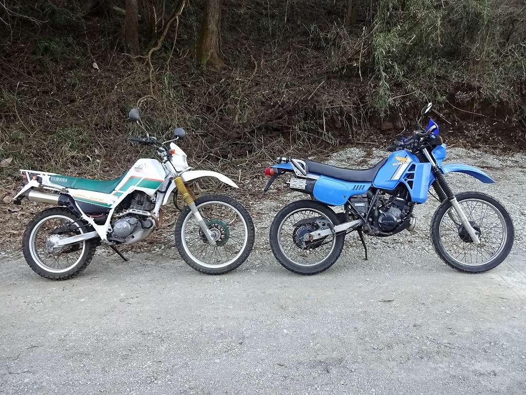 「バイクは排気量が大きくなればなる程、車体の大きさが大きくなる。」とお考えの方が多いです。もちろん間違ってはいませんが、あくまで基本的な話なのでご注意下さい。最近では、ホンダ・MTX125をご希望されるお客様に多かったのですが、「MTX125だったら、今乗っているヤマハ・セローよりはサイズ的に小さくなるから大丈夫だろう。」と思い込んで、何も大きさの事を確認せずに現車確認のためにご来店され、実際の大きさに驚くと言うケースが結構ありました。丁度当店にもセロー225(上記画像左)の在庫がありますのでMTX125(上記画像右)と並べてみましたが、どう見てもMTX125の方が大きいです。ちなみに数値で比べてみると、MTX125は全長×全幅×全高:2085mm×830mm×1175mmで、セロー225は全長×全幅×全高:2070mm×805mm×1140mmと言う数値ですので、結構違いがあります。ちなみに乾燥重量はMTX125が99kg、セロー225は108kgとなっています。エンジンはMTX125が2ストロークエンジンでセロー225が4ストロークエンジン、最大馬力はMTX125が18馬力でセロー225は20馬力となっています。ご覧のように、特に2ストロークエンジンの時代のオフロードバイクは、小さい排気量でもパワーがあるので車体も大きいモデルが多いのです。「今乗っているバイクが、自分の体型的にギリギリの大きさなので、今のバイクよりも大きいか小さいかが気になる。」と言う方は、ぜひご来店前にお電話でお問い合わせ下さい。ちなみにMTX125は販売終了しておりますので現在在庫はございませんが、今後も125ccのオフロードモデルが入庫する予定はありますし、欲しいモデルが決まっている方はバックオーダーでの対応も可能です。バックオーダーも在庫車の確認も、お気軽にお電話でお問い合わせ下さい。