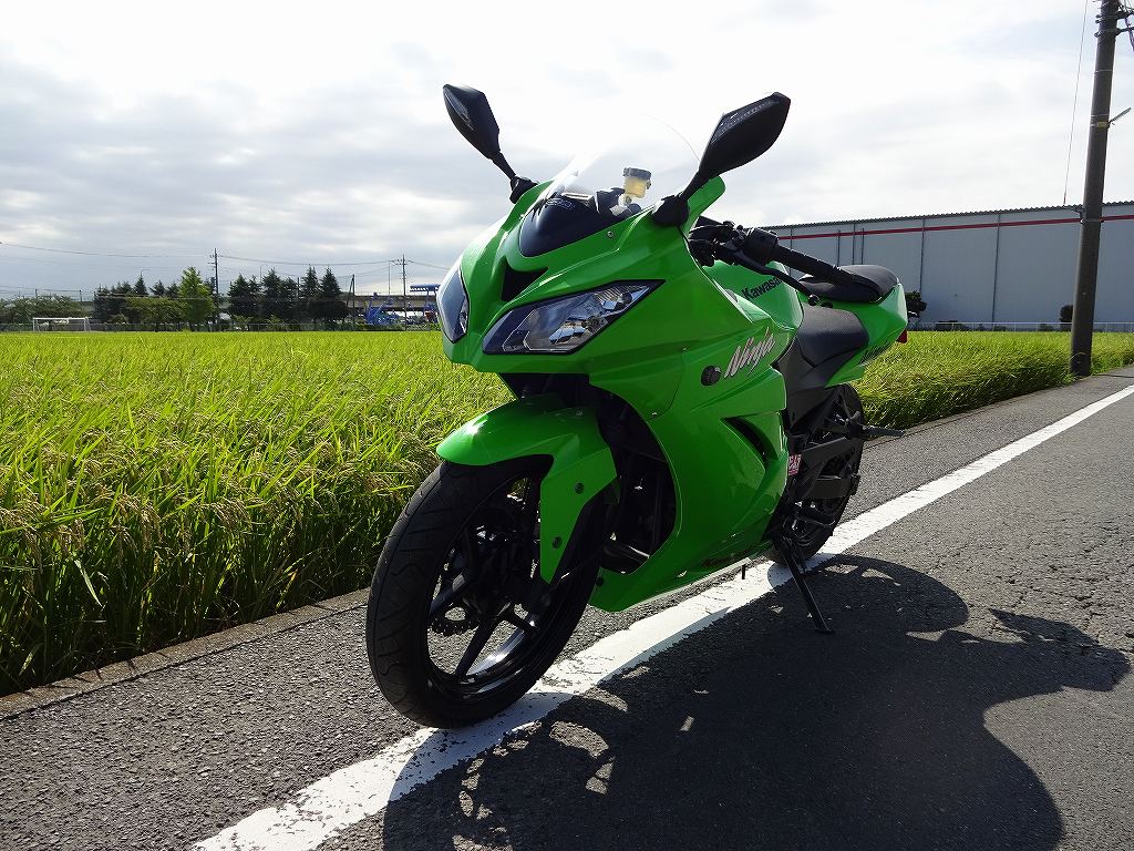大変お待たせいたしましたが、カワサキ・Ninja250Rが販売開始となりました。今回の固体は、社外カウルと社外マフラーを装備した、トータルでカスタムされた1台となっております!初期型でありながら後期型にも勝るくらいのデザインとなっておりますので、「現行型よりもカッコイイ!」とおっしゃる方が多いです!Ninja250Rに搭載されるエンジンは、直前まで販売されていたカワサキ・ZZ-R250と同様の248cc水冷4ストローク並列2気筒DOHCとなっています。このエンジンはカワサキ・GPZ250Rに搭載されたものを基本設計とする非常に息の長いシリーズとなっていますが、Ninja250Rではシリンダーヘッド周りやカムチェーンテンショナ等多くの点が改良されました。また燃料供給システムがキャブレターからフューエルインジェクションになった事も、旧モデルからの大きな変更点の1つです。上記のような構造になったNinja250Rは、従来のエンジンをベースにする事による信頼性の高さとインジェクションを搭載した事による日常の使い勝手の良さを手に入れ、「バイク業界の氷河期。」と言われていた2008年に大ヒットとなりました。ちなみにNinja250Rは2013年に「カワサキ・Ninja250」としてフルモデルチェンジを行っていますが、予告段階で注文が殺到したために3日間で年間販売計画台数の6000台を超えてしまうと言う事態まで引き起こしています。Ninja250RもNinja250も、新車時の人気が非常に高かったために流通している中古車台数もかなりの数です。全体的に数が多いと言う事は、粗悪品の台数も必然的に上がって来ますので、お探しの方はきちんとした固体を探す事をオススメします。