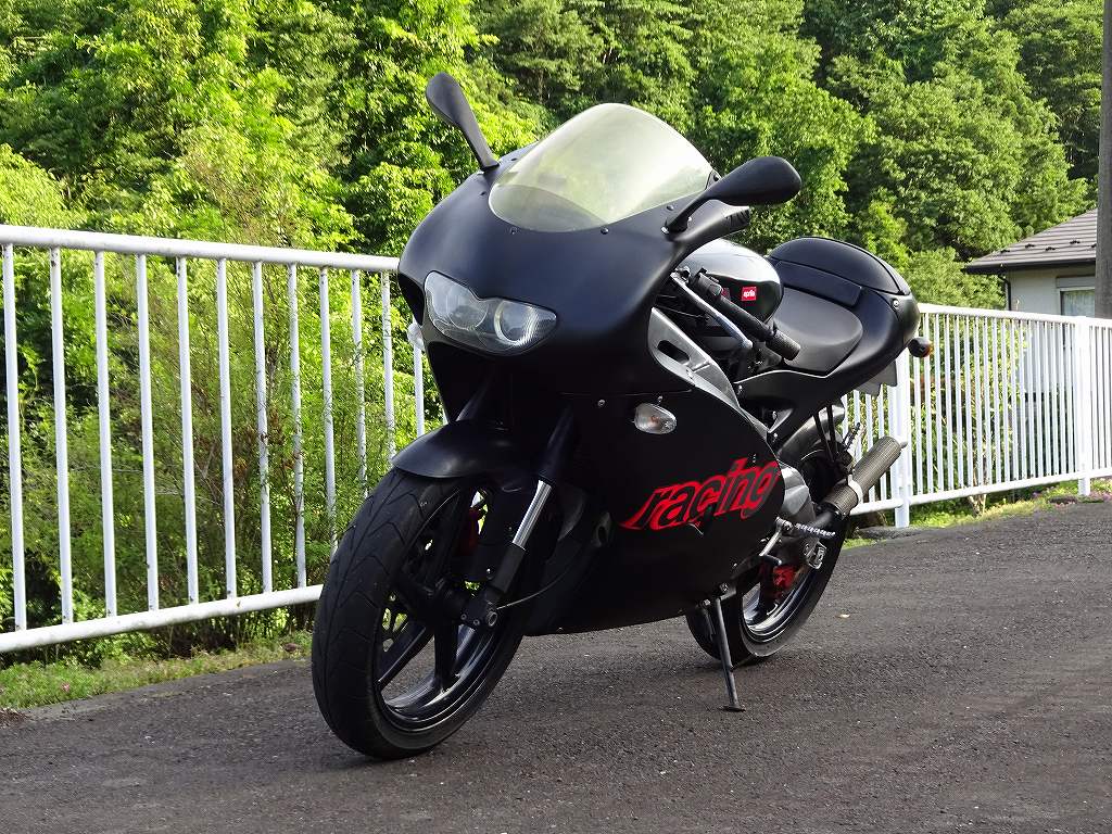先日のブログで軽く告知したアプリリア・RS125が入庫しました。最近はとんでもない忙しさなので写真撮影等はまだ先になりますので、とりあえずテスト走行時に撮影した写真だけの掲載になります。こちらの固体は最初の販売からメンテナンスまですべて当店が担当しておりますので、販売当時とまったく変わらない絶好調っぷりです。125ccの2ストエンジンとは思えないような始動性の良さに始まり、レブリミットまでキレイに吹ける絶好調のエンジン、最高のフィーリングと制動能力を誇るブレーキ、跨っただけで解るボディ剛性の高さと、普通の125ccのレーサーモデルと思っていると衝撃を受けるようなクオリティとなっております。大きなキズも無い上質なマットブラックのボディは、オーナー様の好みで最低限のステッカーのみと言った「敢えて目立たない仕様。」となっております。逆に言えば新しいオーナー様が好きなステッカーで仕上げられると言う利点もありますので、「買う時に同時にステッカーもオーダーしたい。」と言う方はご相談下さい。撮影等はまだ先の予定ですが、現車は既に本店に入庫しておりますので現車確認をご希望の方はお気軽に08066781430(担当者直通、24時間OKです。)までお電話下さい。最近はなかなか程度の良いRS125は手に入らないので「チャンス!」とばかりに思い切り試乗して楽しみましたが相変わらず最高です。本音を言えば私が欲しい(スタッフが全員思っている事ですが・・・)くらいに程度が良いです。ある意味この時代のアプリリアにしては奇跡ですが、エンジンからフレーム、カウルと、どこを見てもダメな部分がほぼ無いと言う最高クラスの状態なのです。現在販売しているアプリリア・RS50もそうですが、この時代の極上のアプリリアシリーズは本当に見付からないので、お探しの方はぜひお早めにどうぞ!
