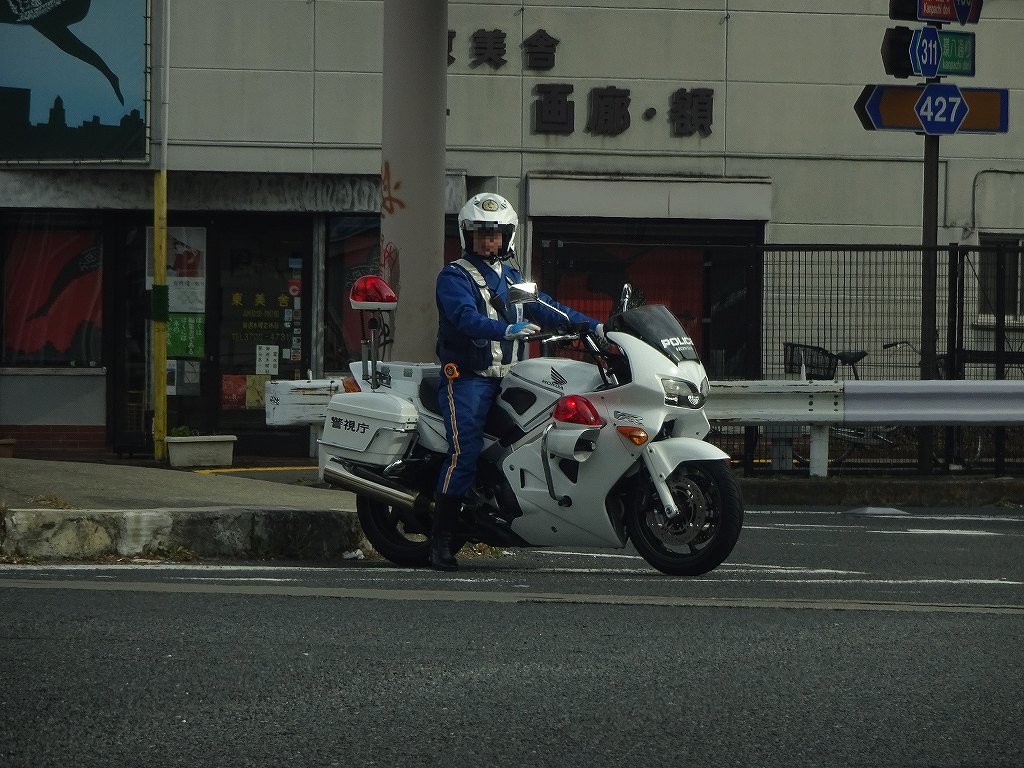 「白バイ隊員のテクニックはスゴい!」と言うのは周知の事実ですが、白バイを分析してみるとさらにスゴさが解ります。排気量や車種にもよりますが、1300cc(たぶんホンダ・CB1300Pと思われる。)クラスの白バイだと、総重量は350kgにもなるそうです!CB1300Pは一説によると、パワーは100馬力程度ですので大型バイクとは思えないパワーウエイトレシオになっています。ちなみに私の現在の愛車である、スズキ・GSX1300Rハヤブサは総重量で270kg、パワーで175馬力くらいになります。ハヤブサよりも80kg重くて、75馬力もパワーが低いのにあの運動性能なのです!当然白バイ隊員の毎日の訓練が成せる業ではありますが、テクニックを昇華させるとバイクのスペックの差を帳消しに出来ると言う良い例だと思います。このような事実を知ってしまうと、「白バイ隊員を普通のバイクに乗せたらどれだけ速いんだろう?」と言う余計な疑問も浮かんで来るのですが、プライベートでは意外と大型バイクに乗っている方は少ない(私が聞いた限りではいなかったです。)みたいです。私が知っている元隊員や現役隊員は、小排気量のトライアルタイプのバイクを所有している方が多かったです。「普段重い大型に乗っているから、プライベートでは軽いの乗りたいのかな?」とも思ったのですが、「トライアルはムダなパワーが無くて、白バイと同じような動きが練習出来るから。」との事でした。白バイは一般道でのUターンやゼロ発進等の細かい動きが重視されるので、最高速度やサーキットのタイム等とは無縁のテクニックが必要なのだそうです。言われてみたら、確かに白バイの大会も細かいコーナリングばかりですが、あの重量のバイクであの動きと考えると色々な意味で恐怖を感じます・・・