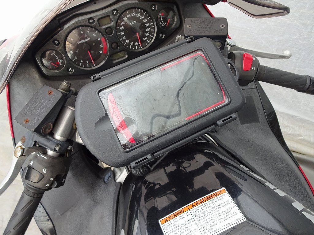 スズキ・GSX1300Rハヤブサ用に作ってもらっていたナビステーが完成しました!先日も説明したように、私がバイクに使用するナビはスマホのナビなのでケースに入れて固定するタイプとなります。使っているスマホがかなりの重量があり、固定してもステーが重さに負けてすぐにタンクに接するくらいに落ちて来てしまうのです。落ちないようにギリギリまで強く締めていたら、プラスチック製のステーは割れてしまったためにワンオフでフルメタルのステーを作ってもらっていました。最初は図面を描いてすべてをゼロから作る予定だったのですが、当店のスタッフが「ゼロから作るとお金かかるから、とりあえず汎用品で何とか出来るかやってみるよ。」と言ってくれて、色々試行錯誤してくれていました。結果、ワンオフで作成した場合にかかると思われていた費用の20%程度の格安で完成しました!しかも「今回のステーはフルメタルだからいくらでも締めて大丈夫!」と言われたので、スマホをセットした状態でかなり固く締めてみましたが微動だにしません!今回はステーを支える支柱の部分からすべてが金属製ですので、どのような使い方をしても安心出来ます。「バイクでスマホをナビとして使いたいんだけど、プラスチックのステーが頼りない・・・」と言う方は、ぜひご相談下さい。しかし最近のスマホはどのモデルも画面が大きくて重いのに、なぜスマホホルダーやステーはプラスチック製が主流なのでしょうか?そろそろアフターパーツ業界自体が金属製のホルダーにシフトしてくれる事を祈ります・・・