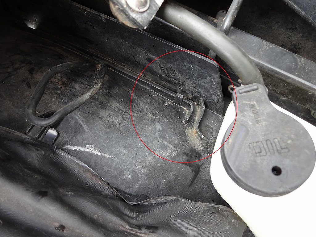 先日のブログで、「アプリリア・RS125のタンクを上げた状態で支えるモノが何も無い。」と記載がありましたが、これに対して「確かシートの中にステーがあったと思いますよ?」と言うコメントを頂きました。RS125にお乗りの方数名に聞いたところ、「ステーは無いけど変な溝がある。」と有力な情報を頂きましたので確認して来ました。上記画像がそうなのですが確かにステーっぽい溝が確認出来ましたので、たぶん本来はここにステーがあったのではないかと想像されます。そのため、「タンクを上げた状態で固定出来るステーやバーがまったく無い。」のではなく、「タンクを上げた状態で固定するステーやバーが大体無くなっている。」に訂正させて頂きます。間違った情報を記載してしまい、大変失礼致しました。また、情報を提供して下さって本当にありがとうございました。当店も古いバイクを多数取り扱っておりますので修理やカスタムは出来るのですが、細かい情報知らない部分も多々あります。車種によってはメーカーも既にデータが無かったり、調べても調べきれない部分がありますのでこのような情報提供は非常に助かります。RS125も情報の少ない車種の1台ですので、ぜひ何かご存知の方がいましたら教えて頂ければと思います。ちなみに今回の件で聞いて回ったオーナー様の1人が「そう言えばそろそろ売ろうと思ってたし、丁度良いから預かって?」と言って下さいました。セルでエンジン1発始動の極上車ですので、お探しの方はぜひご期待下さい!