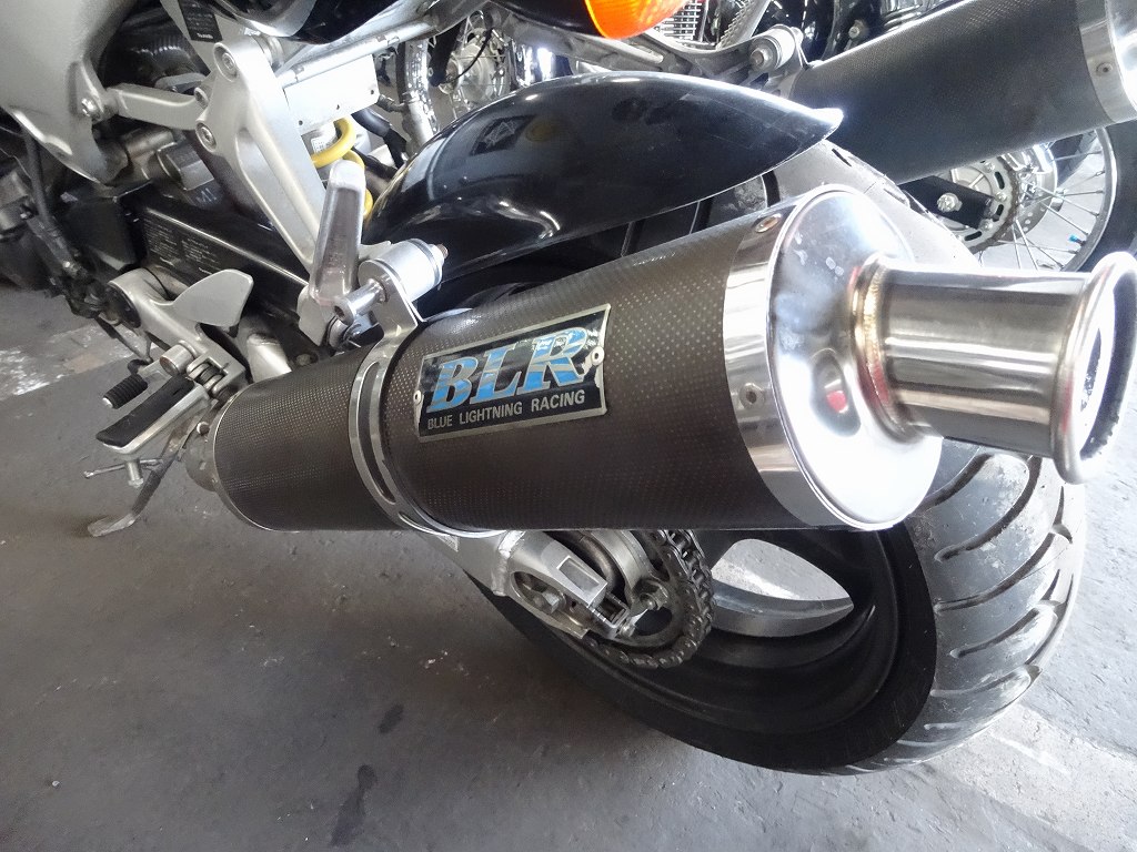個人的な好みですが、私はマフラーは左右2本出しの方が好きな人です。理由は簡単で、右と左のどちらからでも同じに見えるのが好きなだけです。ちなみに同じ理由で、スイングアームも両側にある方が好きだったりします。しかし、レースの世界では軽量化と交換速度を上げるために、片側1本出しのマフラーに片側のスイングアームの車両がほとんどです。当店もレース活動を行っておりますので、軽量で交換しやすい片側マフラーとスイングアームの重要性は解っておりますが、それでもプライベートで乗るバイクは両側が好きなのです。ちなみにバイクのマフラーは、フルセットで買うと30万円を超える金額も珍しくありません。そこらの車よりも高いので、高価なマフラーを装備した状態で立ちゴケなんてした日には、かなりの期間ヘコむ事になるので注意が必要です。基本的には社外マフラーの方が好きな形は多いのですが、スズキ・GSX1300Rハヤブサ(GX72B)だけはノーマルが好きです。ハヤブサのノーマルマフラーは、一般的には「重すぎるから交換したい!」と言う意見が多いのですが、私はノーマルのままが良かったりします。多少重量があってもハヤブサのパワーだったら特に問題ありませんし、私は軽さよりも見た目を重視すると思います。ちなみに当店でもワンオフマフラーは色々造りましたが、それぞれ色々な音を出してくれるので試乗がとても楽しみだったりします。ここで注意なのですが、ワンオフマフラーは車検が必要な251cc以上の排気量のバイクだと、車検が通らなくなる可能性があります。250ccまでは基本的にどんなマフラーでも造れますが、それ以上の排気量は要相談になります。マフラーの作成を依頼されたい方は、お気軽にお電話にてご相談下さい。